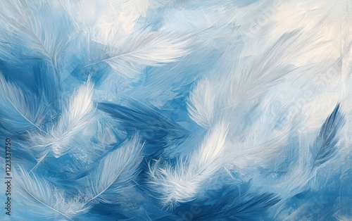 Fototapeta premium An abstract background with soft feather-like textures in shades of blue and silver, creating a light and airy vibe