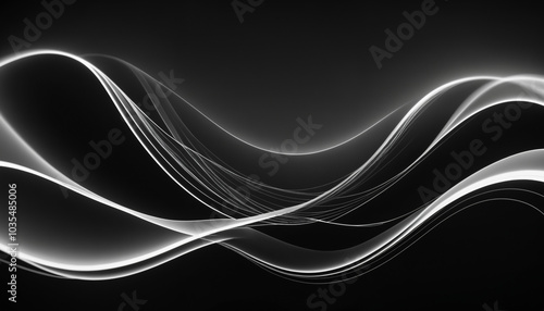 Obraz premium An abstract black and white composition featuring flowing light trails, ideal...