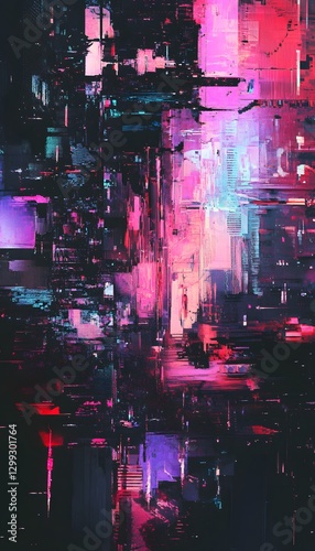 © Farid, Obraz premium An abstract city illustration showing futuristic buildings and bright lights