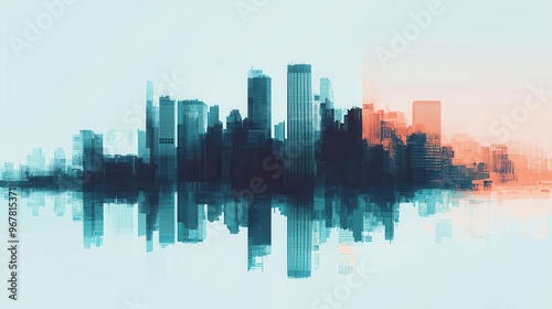 © Creator88, Fototapeta premium An abstract city with stock market fluctuations reflected in the windows of skyscrapers, representing economic growth strategies, Digital Art, High contrast