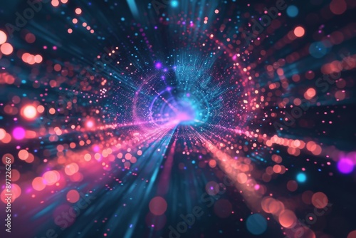 © Ifti Digital, Naklejka premium An abstract composition featuring vibrant lights and blurred elements creating a mesmerizing visual effect, Glittering neon lights in an abstract futuristic design, AI Generated