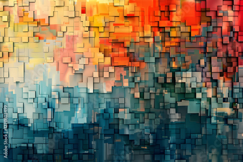 Fototapeta premium An abstract composition of colorful, pixelated shapes creating a vibrant...