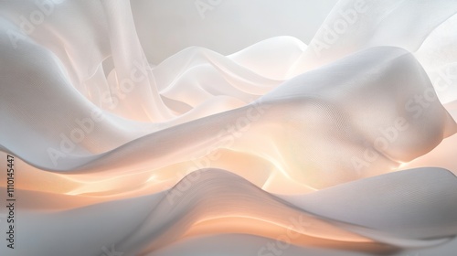 © Aisha, Fototapeta premium An abstract 3D environment with fluid shapes resembling rippling fabric, softly lit from beneath, creating dynamic, flowing patterns