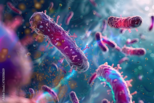 © Only AI Studio, Fototapeta premium An abstract 3D scene depicting the concept of horizontal gene transfer among bacteria.