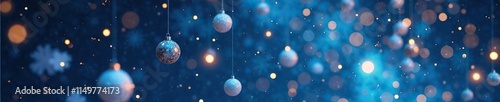 Obraz premium An abstract defocused night sky with white silvery Christmas balls scattered across the sky like confetti in a celebratory atmosphere, balls, festive