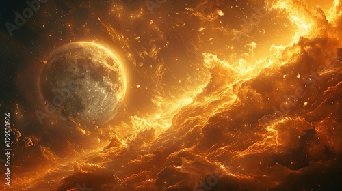 Obraz premium An abstract depiction of a celestial scene with a radiant moon.