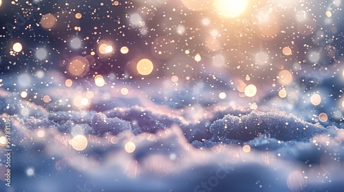 Naklejka premium 07240954 394. An abstract depiction of a snowy winter landscape with an overlay of sparkling Christmas lights, the blurred bokeh effect creating a captivating and festive background, the lights