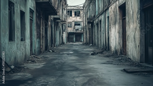 Obraz premium An abstract depiction of poverty with empty streets and neglected buildings,...