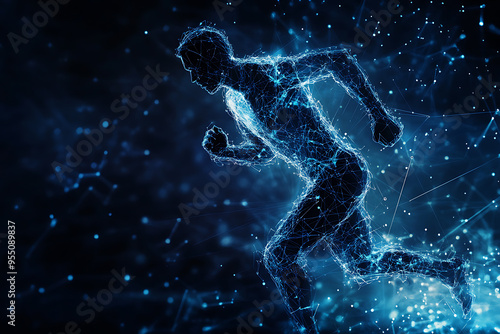 Naklejka premium An abstract digital background banner featuring the image of a running man