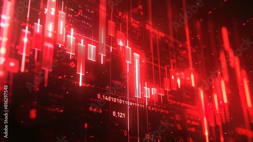 © Koplexs-Stock, Obraz premium An abstract digital chart forms the backdrop, displaying stock business graphs, statistics, and diagrams illustrating data exchange within finance, trends, and trade in the economy