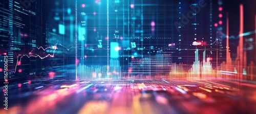 © Huzaifa, Obraz premium An abstract digital interface with data charts and graphs, leaving room for text