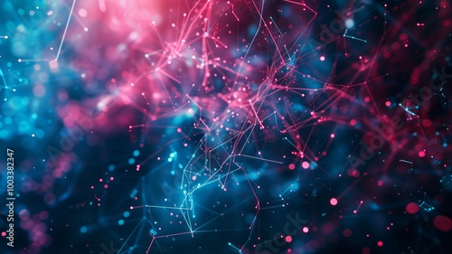 © Nata, Obraz premium An abstract digital network represented by interconnected blue plexus lines and glowing points