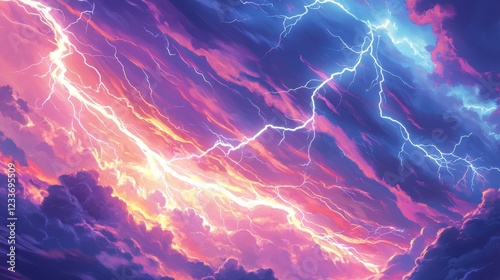 Obraz premium An abstract, electrifying lightning bolt flashing through a colorful anime...