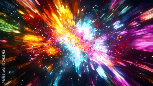 © Srga Artworks, Naklejka premium An abstract explosion of colorful glowing lights with a dynamic motion effect.