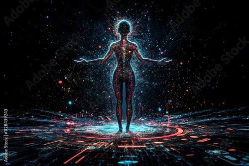 Fototapeta premium An abstract female figure, composed of a multitude of connected points and...