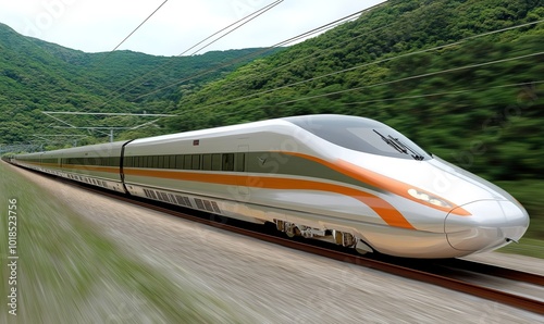 Fototapeta premium An abstract futuristic design featuring a bullet train or super high-speed...