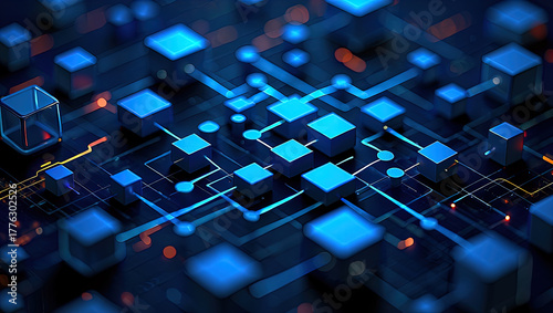 Obraz premium An abstract, futuristic digital composition depicting a microchip (processor)...