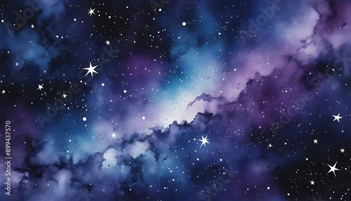 Fototapeta premium An abstract galaxy watercolor texture with deep purples, blues, and blacks,...