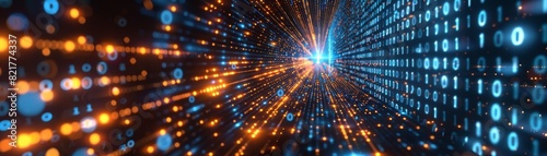 © Антон Сальников, Obraz premium An abstract history of binary code technology. A digital binary data model and a secure data concept
