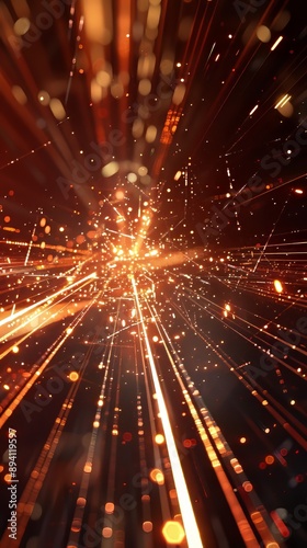 Fototapeta premium An abstract image featuring a burst of golden light and sparks against a dark...