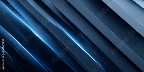© 沈军 贡, Obraz premium An abstract image featuring blue and black geometric lines creating a sleek and modern design, perfect for a tech-related background.