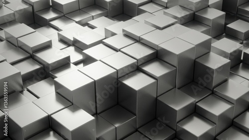 Fototapeta premium An abstract metallic silver cube arrangement in a geometric block pattern.