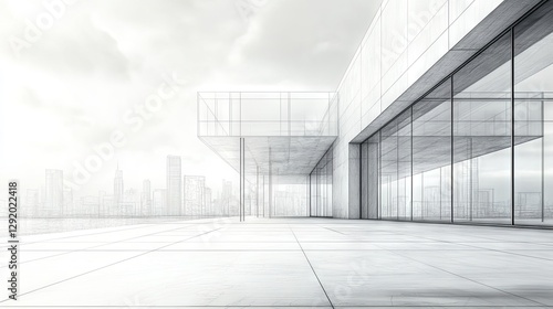 © Kateryna Kordubailo, Obraz premium An abstract, modern urban landscape line drawing showcasing imaginative architectural building construction from a perspective design