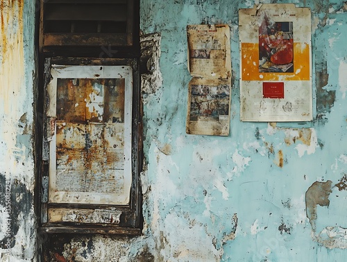 © Moni, Naklejka premium An abstract painting featuring a dynamic interplay of different colors and shapes, creating a visually striking composition. Bold brushstrokes