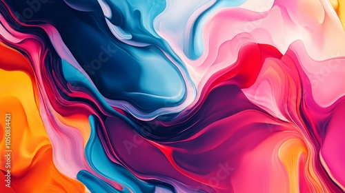 Fototapeta premium An abstract painting showcasing a fluid movement of pink, blue, and orange...