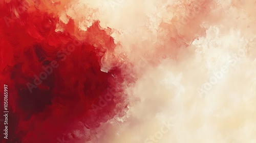 © Timeless Touch, Fototapeta premium An abstract painting with broad strokes in dual tones of vibrant red and soft beige, the colors blending at the edges for a dynamic yet harmonious feel