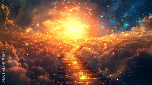 © Oleksandr, Naklejka premium An abstract pathway lined with shimmering gems, leading toward a radiant horizon, symbolizing the journey of wealth creation.