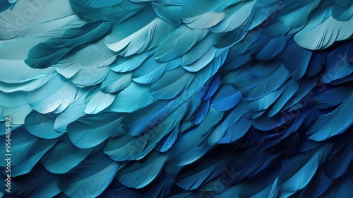 © Napasnan, Fototapeta premium An abstract pattern created with overlapping feathers in various shades of blue and green