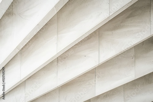Fototapeta premium An abstract pattern featuring white concrete panels arranged in diagonal lines, showcasing a minimalist and modern architectural style that emphasizes geometric designs.
