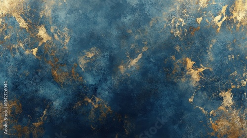 © 69 Timeless Studio , Obraz premium An abstract pattern of soft blues and golds with metallic textures, forming a luxurious, elegant background.