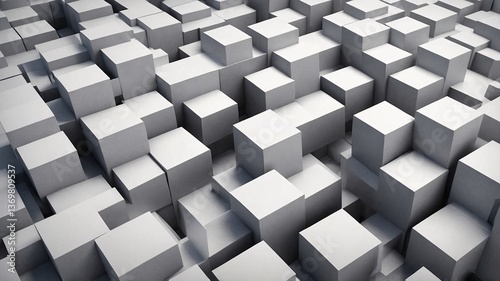 © Nathan, Fototapeta premium An abstract pattern of white and grey cubes creating a dynamic 3D landscape.