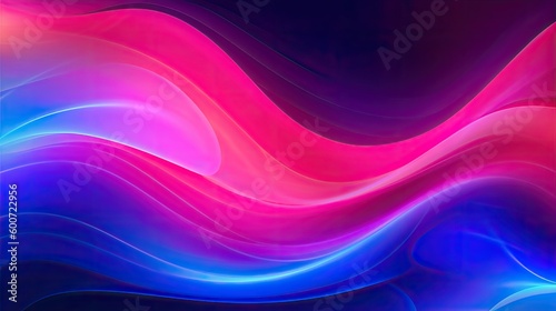 Obraz premium An abstract pink-blue neon background with glowing wave lines. Generative AI