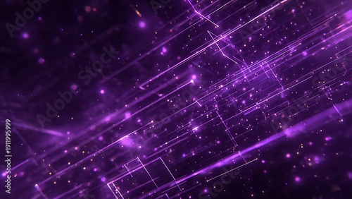 Fototapeta premium An abstract purple digital technology backdrop showcasing intricate geometric patterns and glowing light trails, perfect for futuristic concepts