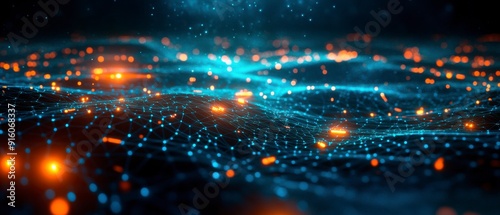 © keks20034, Obraz premium An abstract representation of a cybersecurity network: glowing nodes and lines in a dark digital environment.