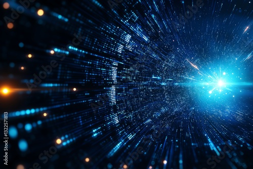 © Tondone, Naklejka premium An abstract representation of digital data flow through a virtual space, showcasing vibrant colors and light effects, symbolizing speed and advanced technology.