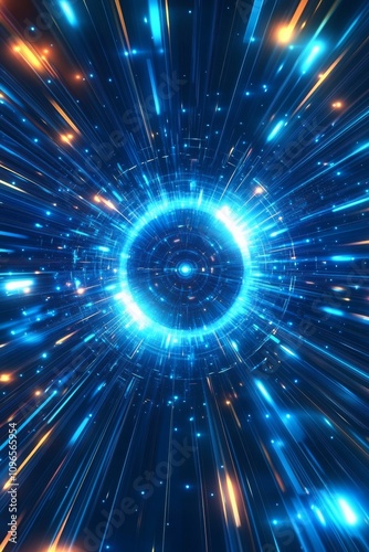 © AminaDesign, Naklejka premium An abstract representation showcasing the concept of light speed, featuring vibrant blue rays and glowing flares, which together create a dynamic and energetic futuristic atmosphere that captivates