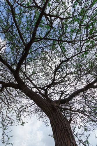 © Sandeep, Fototapeta premium An Abstract silhouette of a tree with branches and leaves and sky in the background