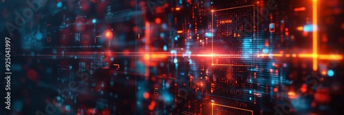 Fototapeta premium An abstract tech-themed background featuring red and blue glowing lights and...