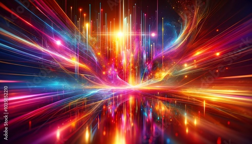 Fototapeta premium An abstract, vibrant image of glowing, multicolored light rays and reflections