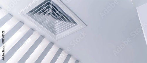 © Ai Studio, Naklejka premium An abstract view of geometric ceiling patterns formed by layered whorls creates a striking visual effect against shadows and light, evoking modernity.