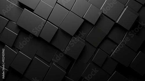 Fototapeta premium An abstract wallpaper made up of interlocking black blocks. A technical 3D...