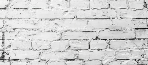 Fototapeta premium An abstract white brick wall texture for a pattern background. A wide panorama picture with a copy space for a banner that would be used on a website