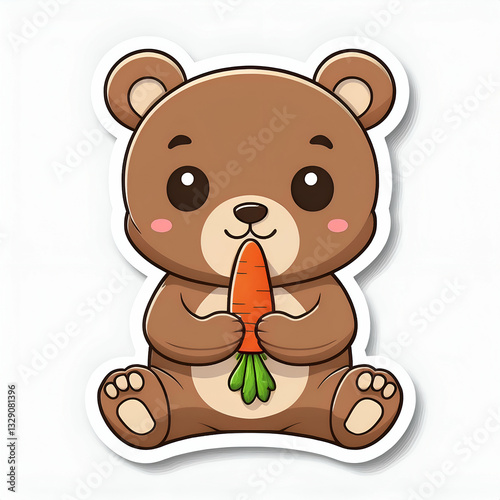 Obraz premium An Adorable Brown Bear Cub Joyfully Munching On A Crunchy Carrot, A Sweet And Wholesome Cartoon Illustration With A Sticker-like Design