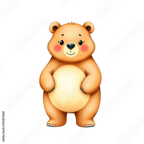 Fototapeta premium An adorable cartoon bear with a cute, friendly expression on a white background.