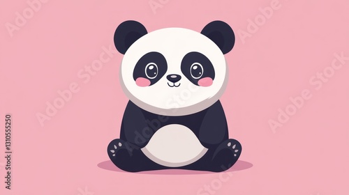 © 11faqihtanjung, Obraz premium An adorable cartoon panda bear is sitting on a pink background