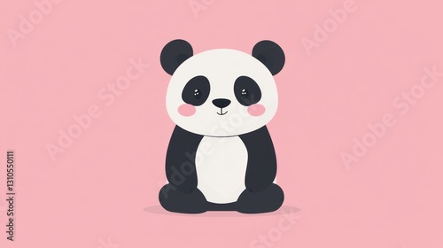 Obraz premium An adorable cartoon panda sitting against a soft pink background